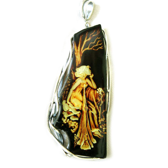 This is an amber pendant that comes with refined details. It features a unique and elegant appearance. This amber pendant will add a touch of uniqueness to your outfit.
