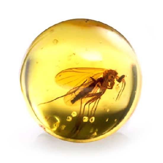 Displayed is an amber stone that comes in a beautiful straw yellow color with brown hints. An insect was trapped in it during the formation of this gem. This unique amber is a good choice for making fine jewelry.