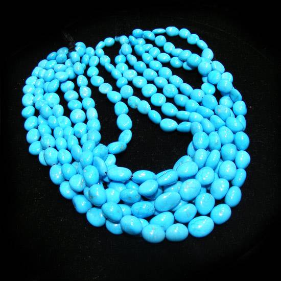 This American turquoise necklace is an ideal fashion accessory for all ladies. The elegant necklace is made of high quality nugget turquoise. The turquoise have smoothly polished surfaces that make the necklace radiate with elegance.