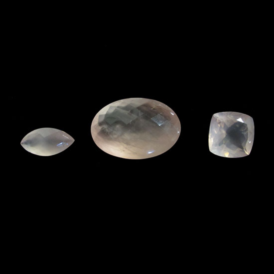 Outlined are three pieces of translucent amethyst stones with faceted details. Each brilliant amethyst stone is finely cut respectively in marquise, oval and cushion shapes. Those amethyst stones give out dazzling sparkles with a splash of glamour.