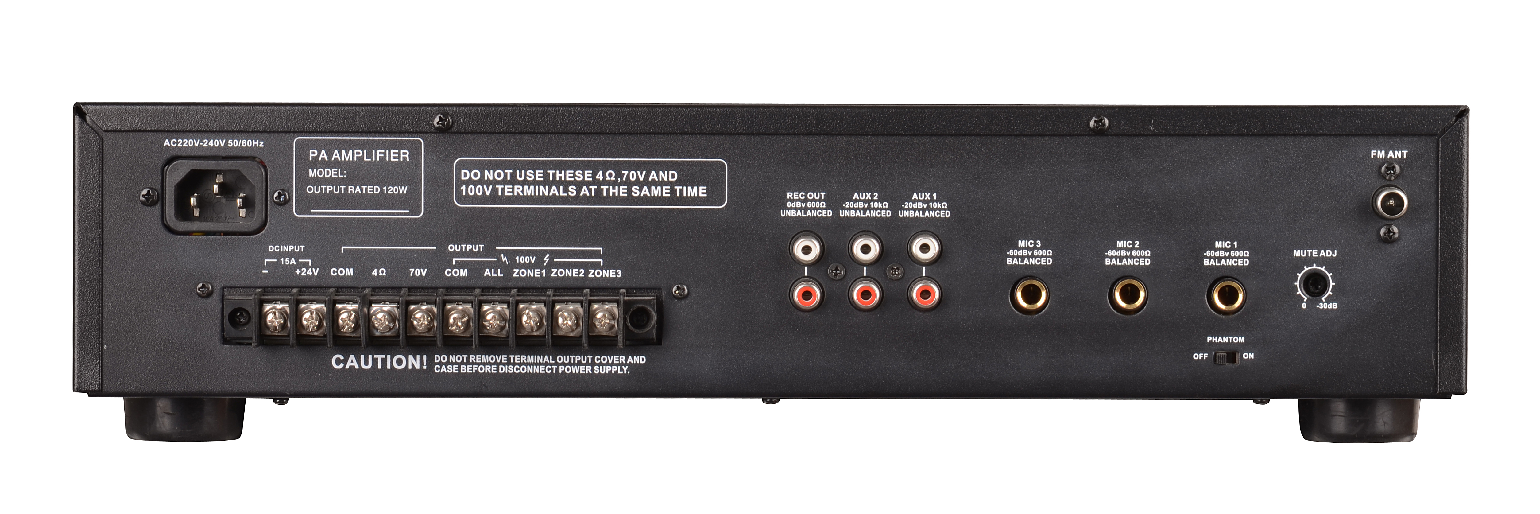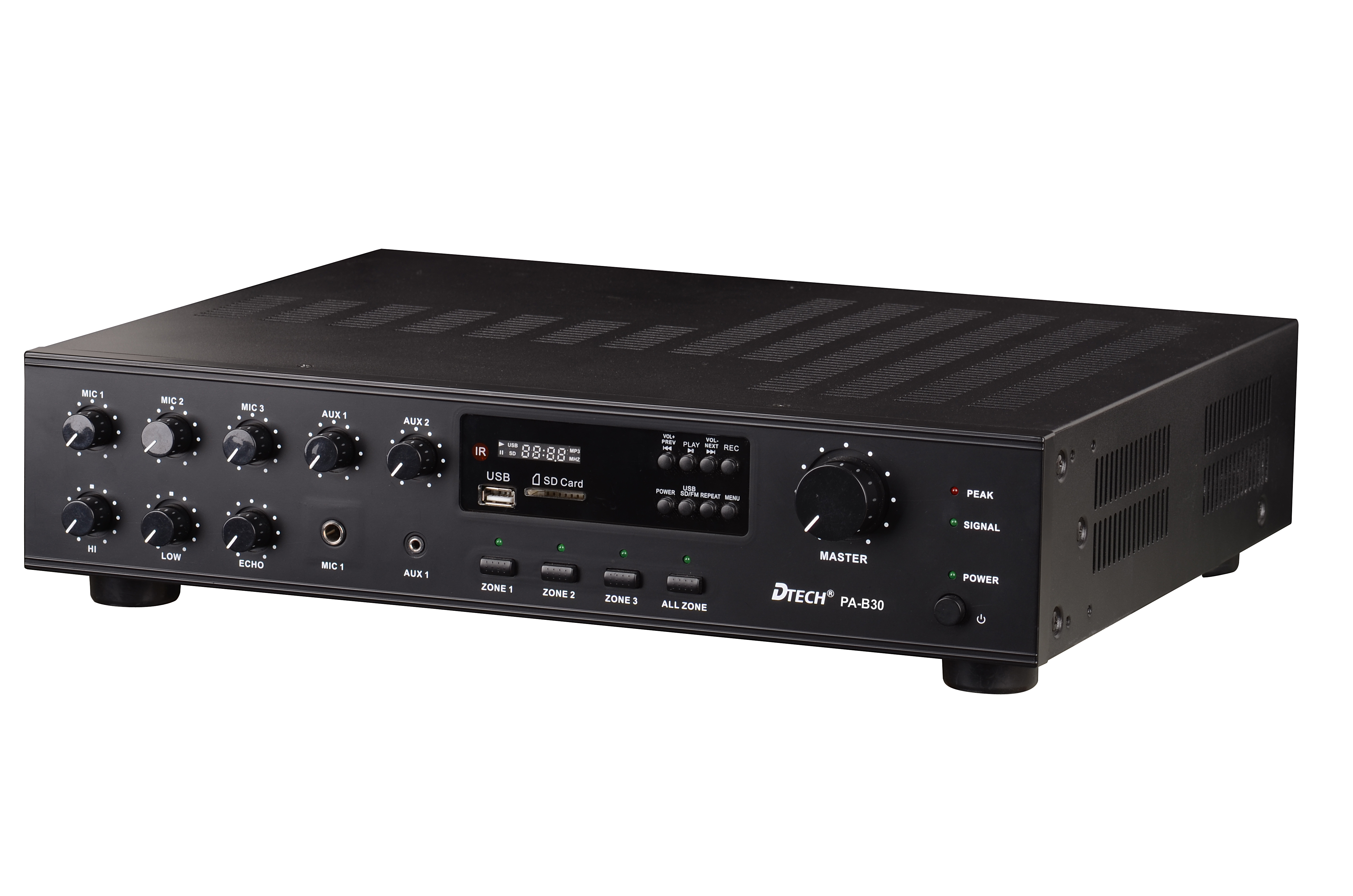 The B serial amplifier is a high cost-performance mixer power amplifier suited for broadcasting paging or background music in schools, offices, shops, factories, mosques, churches and large rooms.