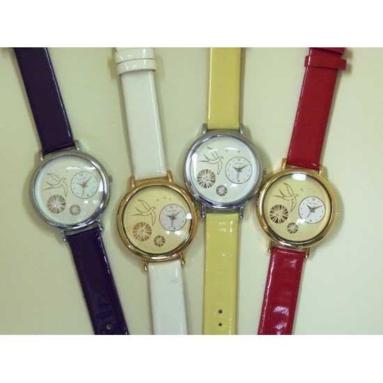 This analog watch exhibits an elegant design. The analog dial boasts an asymmetrical style and is adorned with an outlined peaceful sparrow. The sparkling stones offer added exquisiteness. This fine watch makes a sincere gift item.