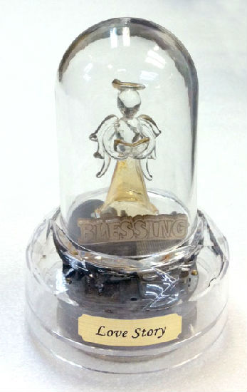 - Labeled with the words “Love Story” on a gold tone plaque.