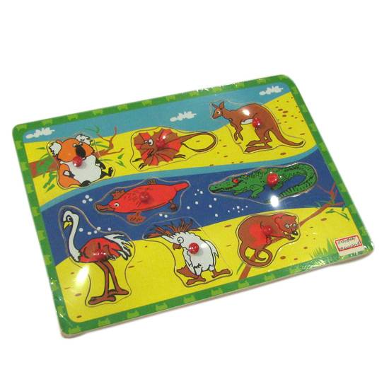 This is an animal puzzle that is both fun and educational. It exposes young children to cartoon pictures of various types of Australian animals that they would not normally see in their daily life. These include animals like kangeroo, kolala, possum, platypus, and emu.
