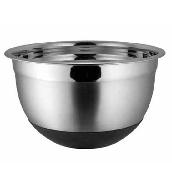 This is an mixing bowl with silicon base to prevent skidding. Mixing bowl is an essential tool for making breads and cakes. This mixing bowl has a luxury design with stainless steel used as materials. It is deep in depth so that it can hold more ingredients and prevent ingredients spilling out.
