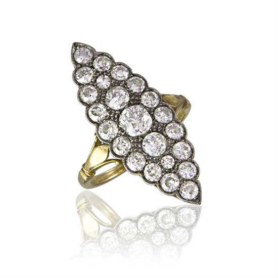 This antique diamond ring is mounted on platinum-topped gold setting. Aaron Faber Gallery, New York, presents carefully selected antique diamond, jade and gold jewelry in its special collection of vintage and antique jewels. Aaron Faber Gallery New York celebrates the artistry of jewelry and watch design through its extensive collection of 20th and 21st century fine jewelry and collectible timepieces. Aaron Faber focuses on three areas of expertise: contemporary studio jewelry, classic jewelry new and old, and collectible vintage timepieces. The gallery provides professional services such as appraisals, fine jewelry repair and restoration, and estate buying and selling. It also consigns private collections for sale. We invite you to visit us online at www.aaronfaber.com or at our store and gallery at 666 Fifth Avenue, on West 53rd Street, in New York, across the street and slightly east of the Museum of Modern Art. Aaron Faber was founded in 1974 by Edward Faber as a showcase for artist-made jewelry presented in the studio jewelry section, for which the gallery is world-famous. In 1980, Edward Faber began collecting and presenting vintage watches and timepieces, and this personal passion grew into a formidable part of the gallery’s design collection. Mr. Faber is the co-author of “American Wristwatches: Five Decades of Style and Design”, now in its third printing. In 1975, Patricia Kiley Faber joined her husband Edward Faber to open the original Aaron Faber Gallery dedicated to the presentation of contemporary studio jewelry. She is a graduate gemologist and a frequent lecturer in the field of studio jewelry. Aaron Faber is home to many professionals, including three gemologists, a gallery director, sales and service managers, a director of technical services, a watchmaker and innumerable dedicated people who have over the years contributed their expertise to create a unique design experience in the heart of Manhattan.