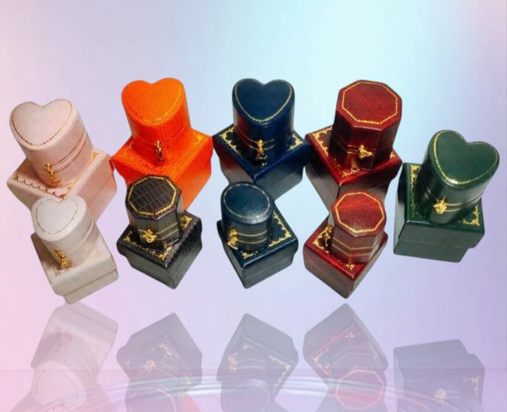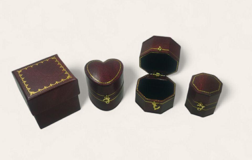 We are the original designer and manufacturer of this antique ring box. This box is a hot seasonal packaging box, typically for Valentine Day, Christmas.... Different box shapes are available, Heart / Oval / Octagon in different fancy paper subject to requirements from brands.