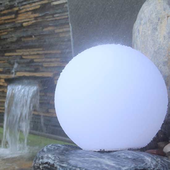 The app enabled smart lamp comes with a ball-shaped housing in white. The LED light source lowers energy costs and has a long lifespan. With a waterproof structure, this lamp can be used in any outdoor environment.