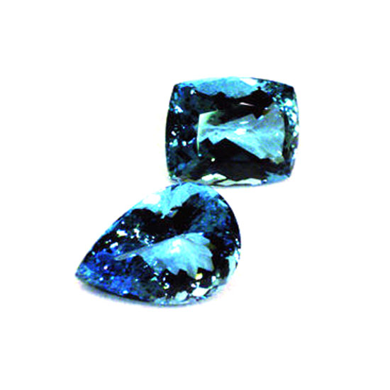 These are aquamarine stones with different cuts. Each piece is finely cut with delicate facets for maximum luster. This gemstone is suitable for different designs of high-end jewelry.