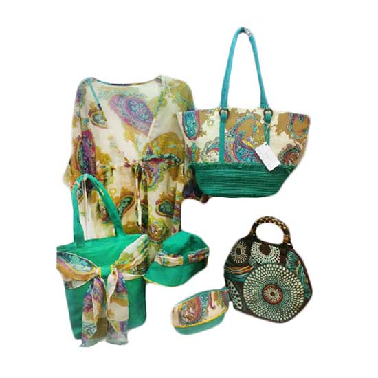 This Arabic beach set includes a beach cover-up piece, handbags and hats with a matching design. Each piece is beautifully accented with attractive floral prints for a decorative touch. This beach set is surely an ideal addition to complete your wardrobe.