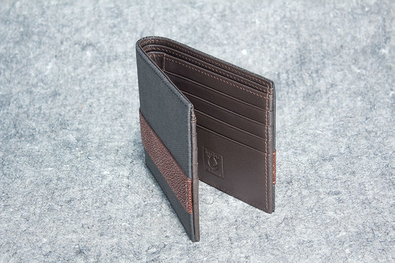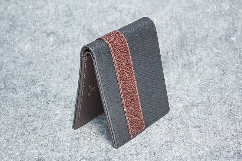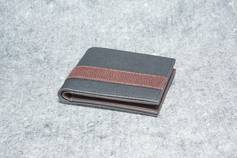 Top of the Line "groove stitched" Chocolate Stingray and Smokey Grey Waxed Canvas Wallet.