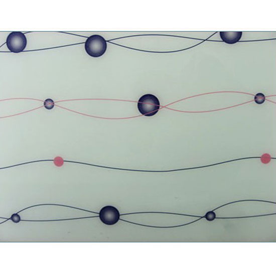 Showcased is a glass panel featuring beautiful patterns. The unique combination of lines and dots exude an artistic style. The glass is perfect to add style to interior décor.