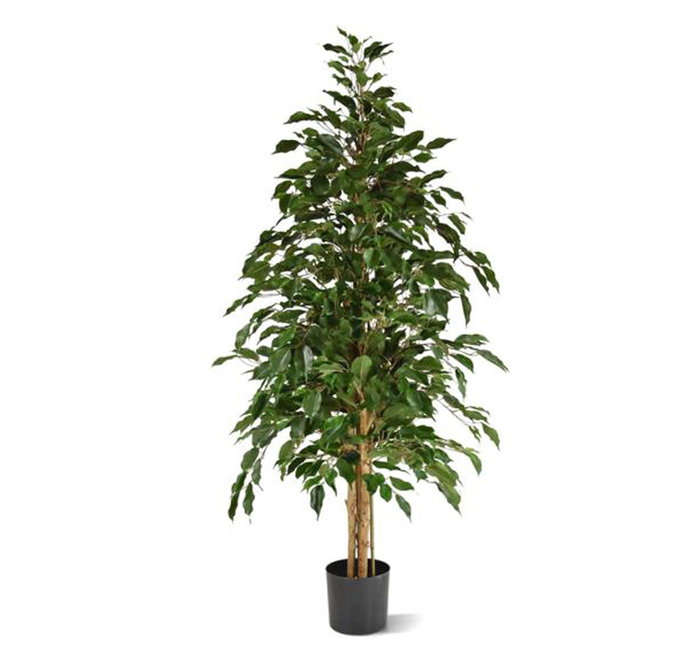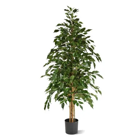 This artificial delux ficus tree is made of plastic. It creates a green accent to beautify the space. It is a good decoration for your home or workplace.