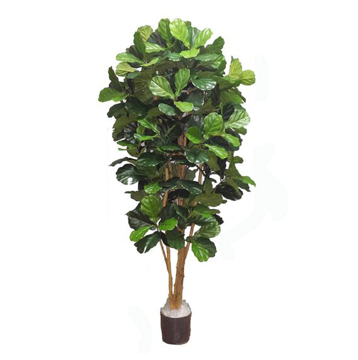 The artificial plant of the fiddle leaf tree plant on a plastic base.