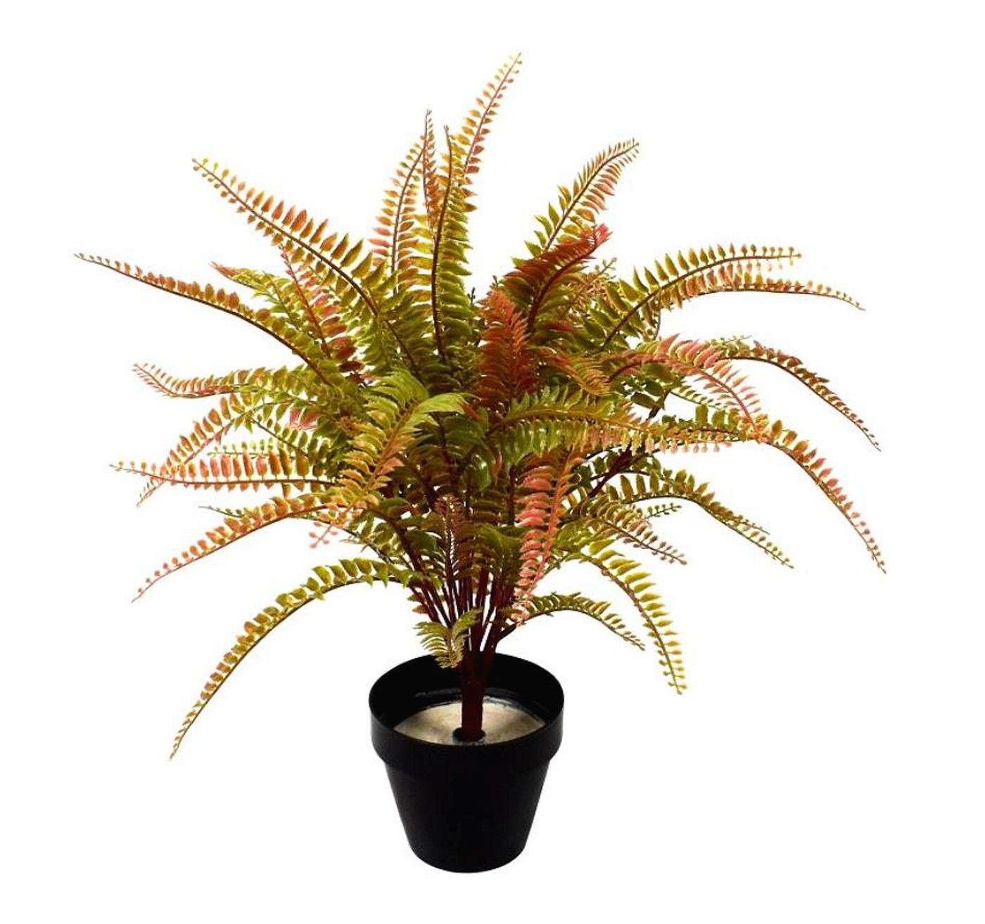 The artificial plant of the polypodiales tree plant on a plastic base.