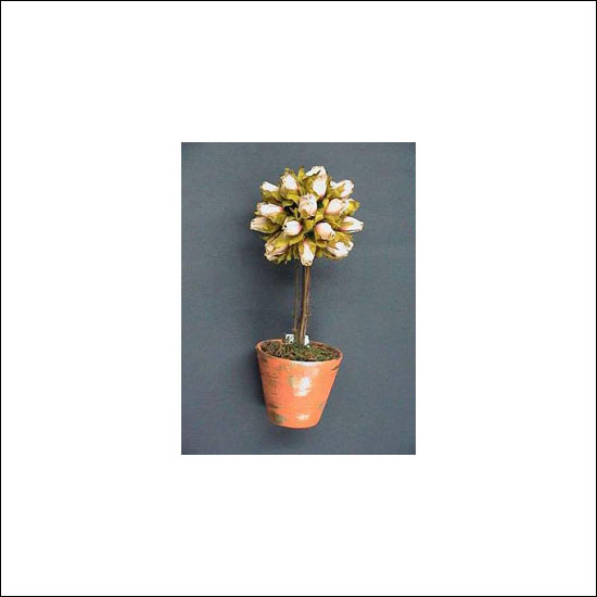 Featured is a pot of artificial topiary flaunting a ball shape. The pastel flowers are protected by cyan leaves, which showcase a 360 degree of viewing angle for placing at any locations.