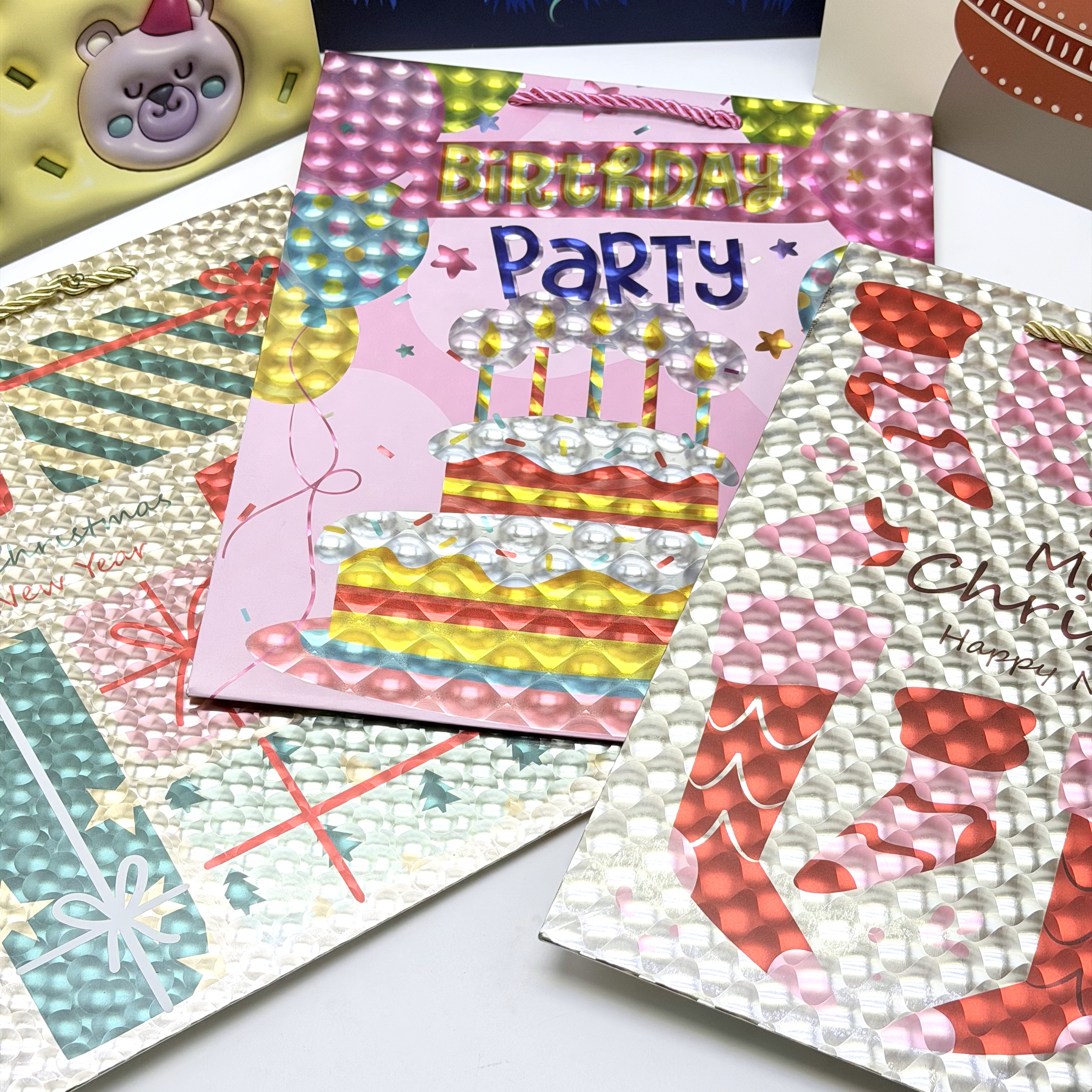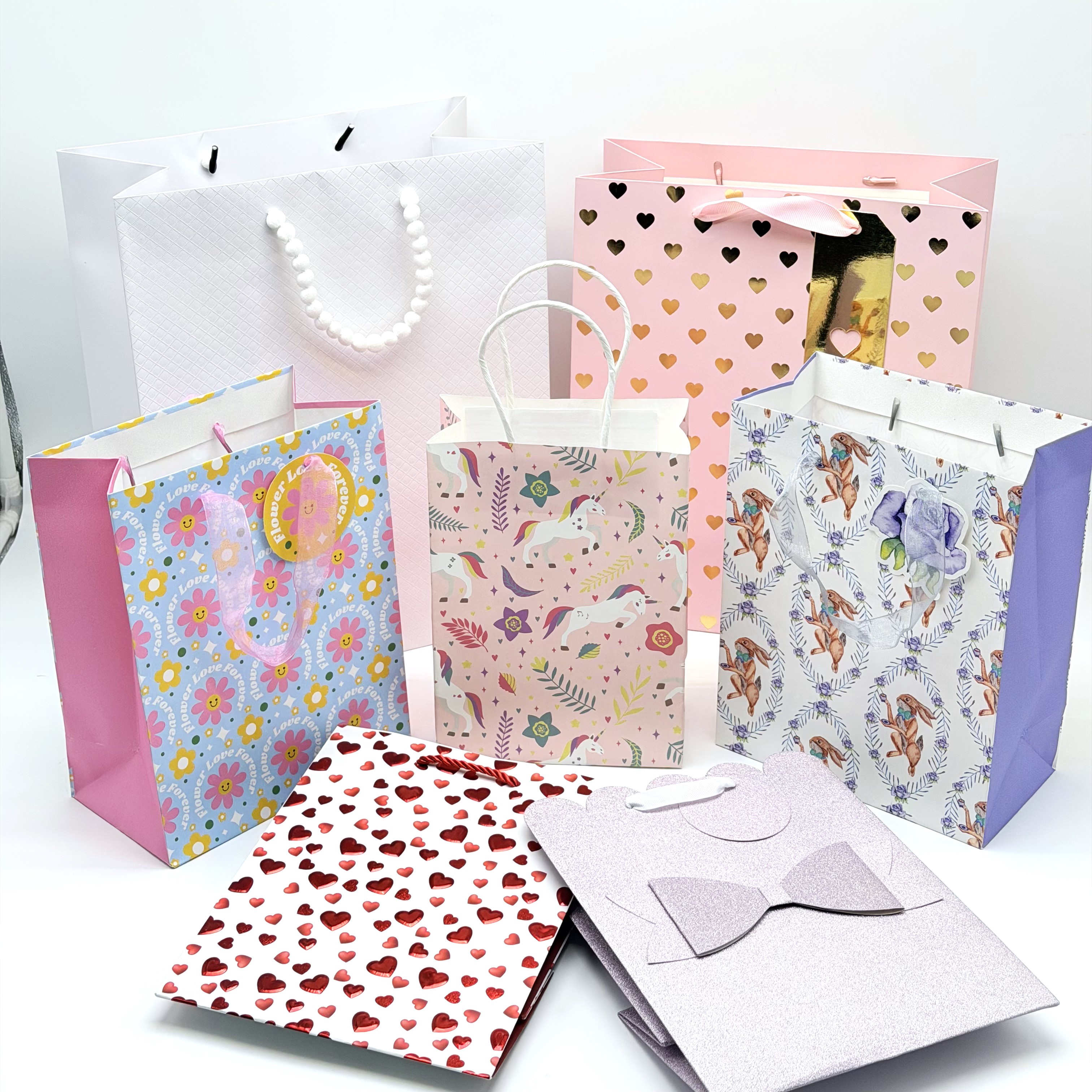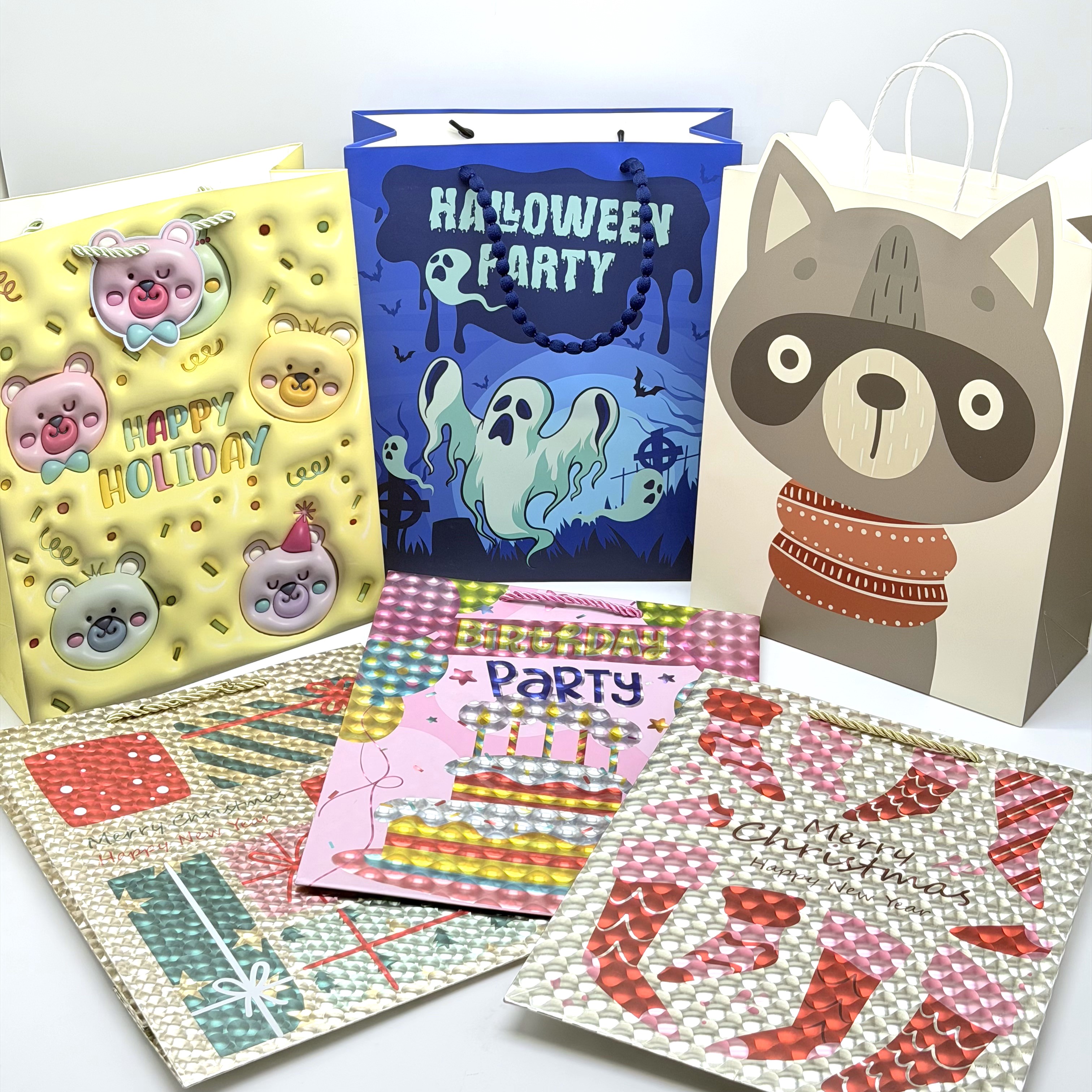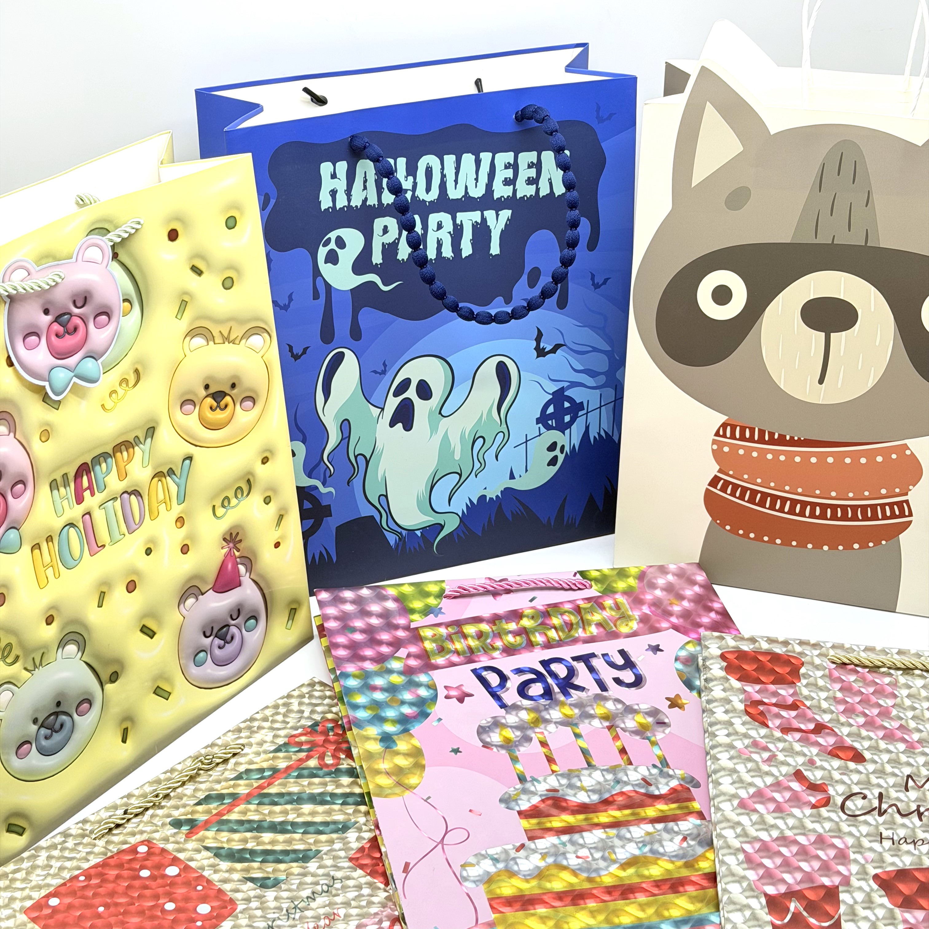 These collection of gift bags features a wide range of festive and cute designs for every occasion. Made with sturdy, high-quality paper and comfortable handles, they are durable enough to hold your gifts securely while adding a fun, personal touch. Ideal for Christmas, birthdays, Halloween, or everyday gifting.
