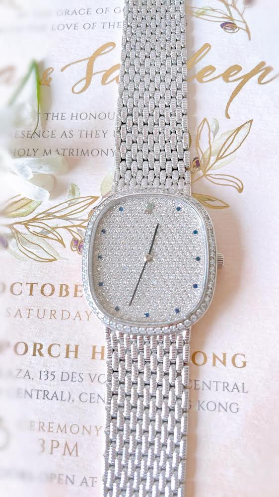 Audemars Piguet 18k White Gold Diamond Bezel Diamond Pave Dial 11 Point Blue Sapphire Manual Winding