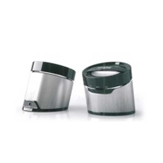 This is a loudspeaker with a unique and stylish design. It features a silvery body with a black top and a black bottom. Equipped with high-quality components, this loud speaker promises excellent sound effects.