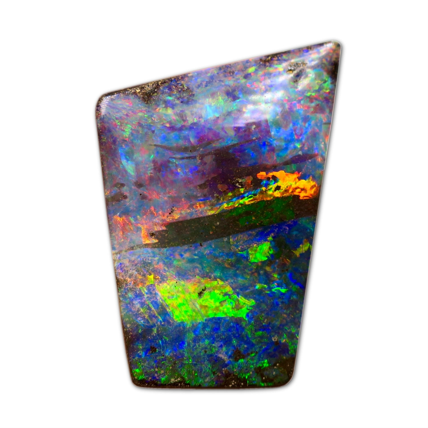 Natural solid free-form Australian boulder opal with multi-color neon display.