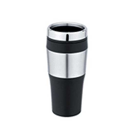 This auto mug features a black and silvery finish. It is completely enclosed to prevent spillage. Enjoy a cup of coffee, tea or soft drinks with this 16oz auto mug.