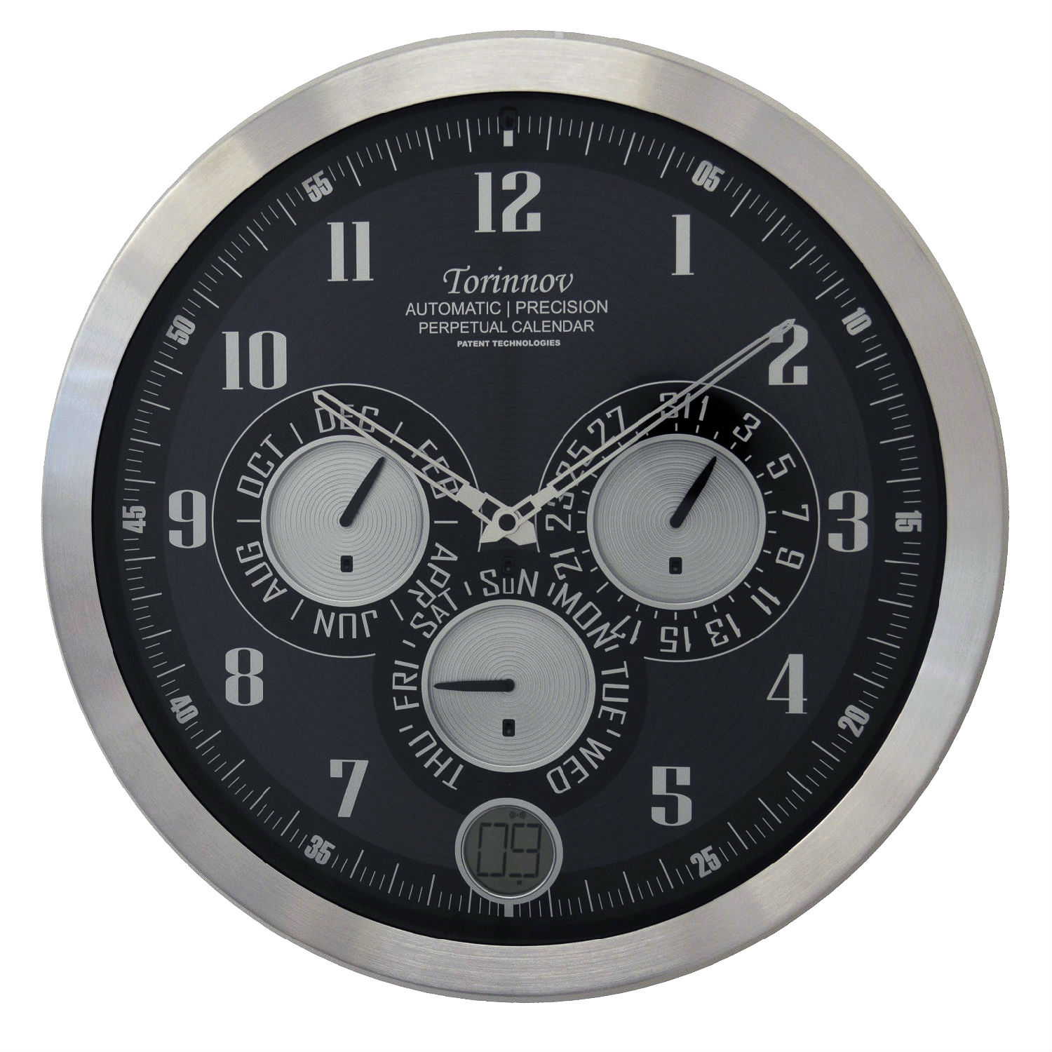 This is an automatic perpetual calendar wall clock with a professional design. It comes with Arabic numeral hour markers, a digital display, two hands and three sub-dials. This well-designed wall clock is ideal for household use.
