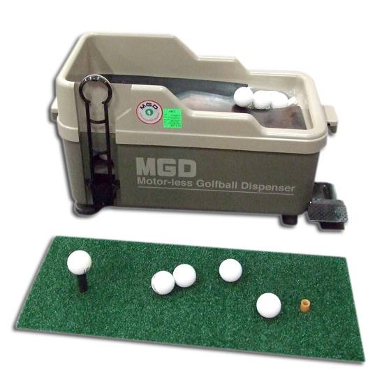 The featured product is an automatic golf ball dispenser, activated by stepping on the pedal. Suitable for both indoor and outdoor use.