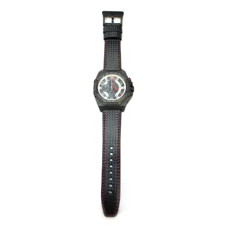 This automatic watch is designed with a round dial, three sub-dials and a date display. It is made of quality carbon fiber for a long service life. This reliable watch will add a stylish touch to your chic look.