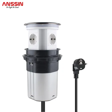 Elevate your workspace with our advanced Electric Desktop Power Outlet, designed for convenient power access and high-speed USB-C charging. This versatile outlet features three German (Schuko) sockets and multiple international standards to meet your diverse power needs.