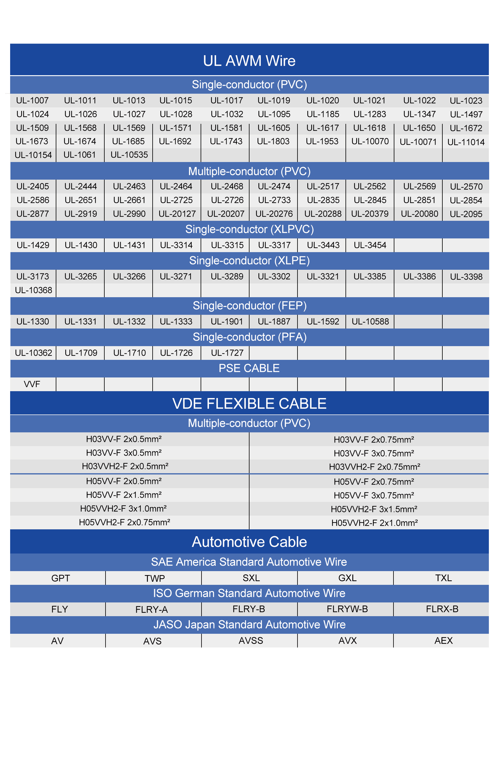 0.3MM2, 0.5MM2, 0.75MM,1MM2,1.5MM2