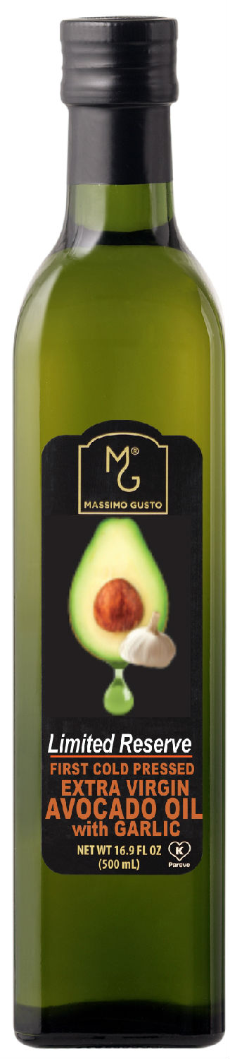 First Cold Pressed Extra Virgin Avocado Oil Infused with Garlic.