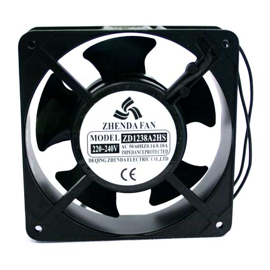 This axial fan comes with five blades. The square housing is sturdily constructed with durable metal material, ensuring a long lifespan. It operates at a large range of temperatures, allowing it to operate in an array of environment.