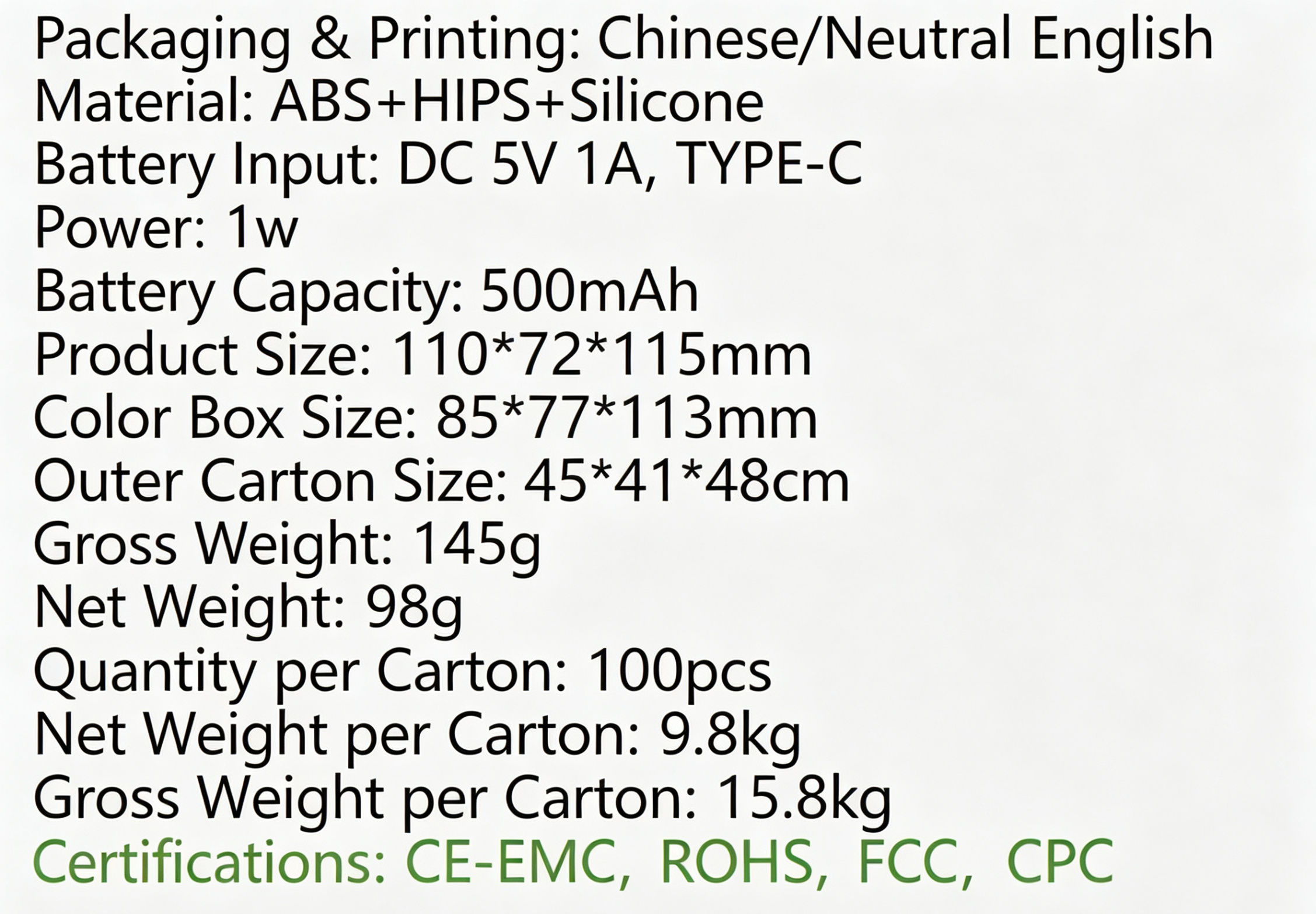 - Certified with CE-EMC, ROHS, FCC and CPC for safety and quality