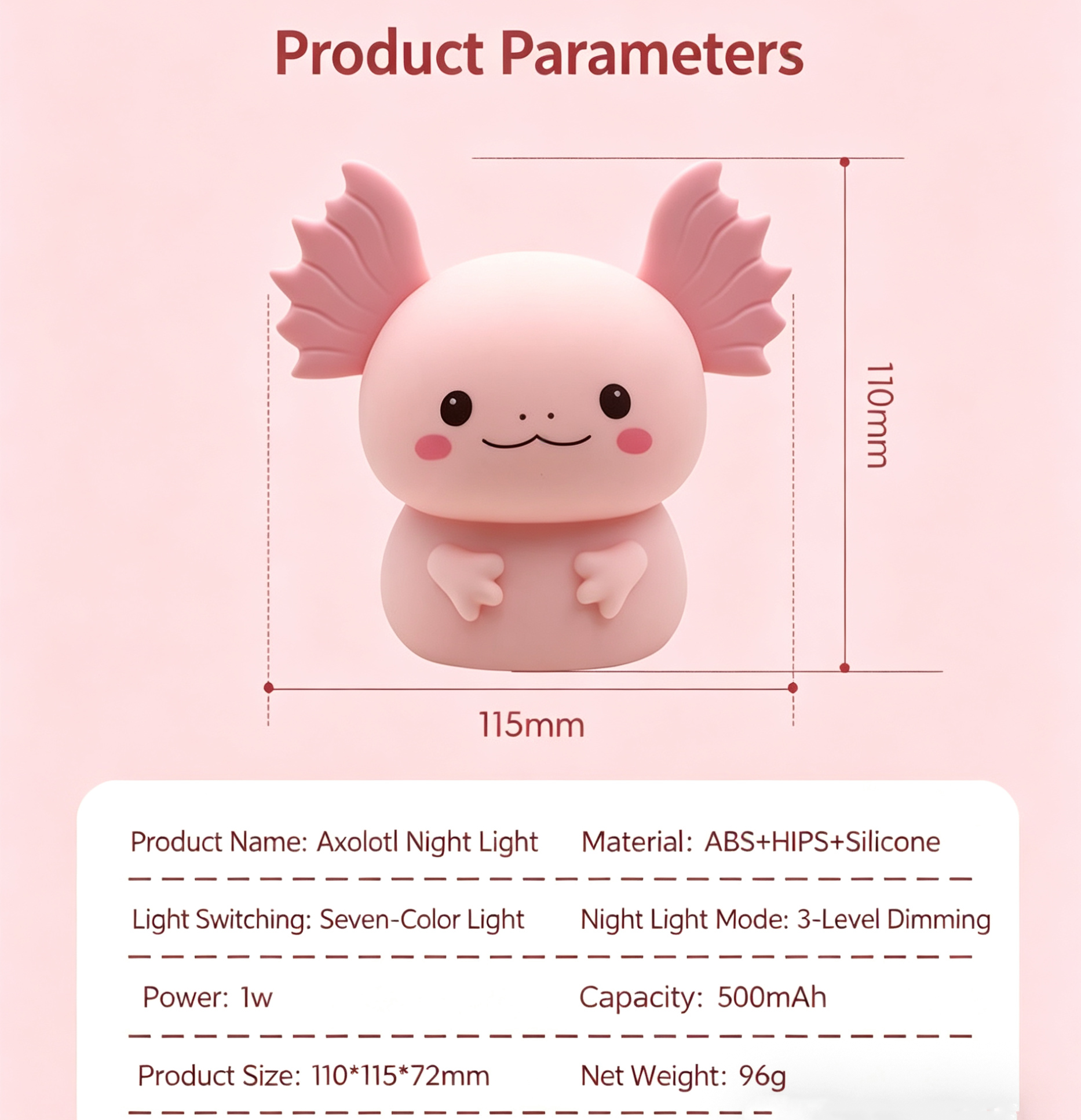 - 1 x Axolotl Silicone Night Light