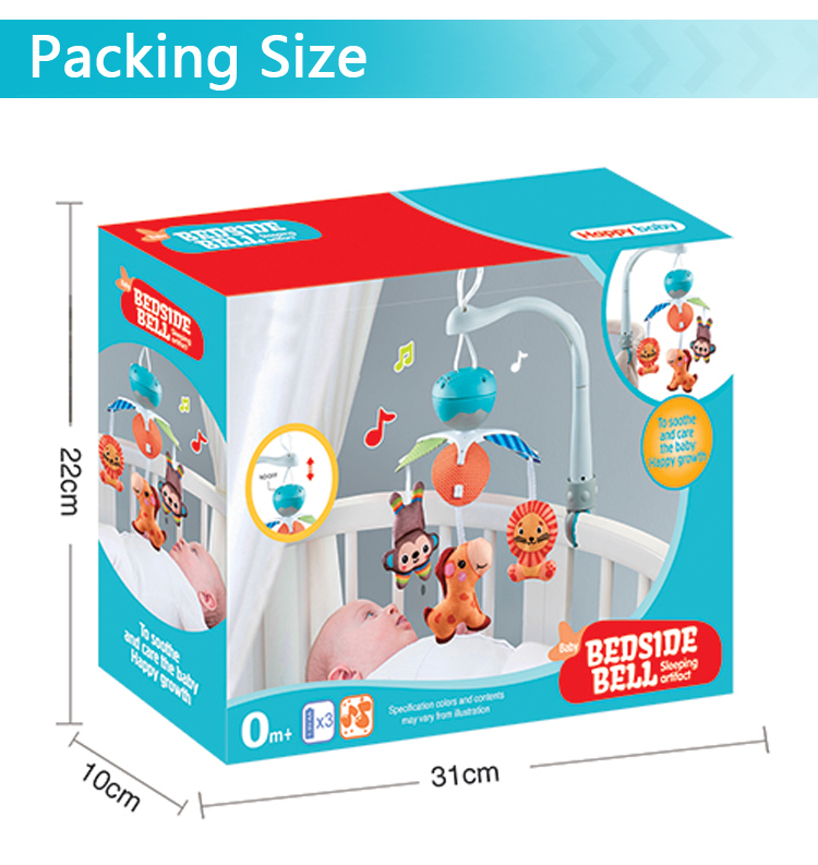 QS Custom B/O Baby Bedside Bell Toys With Music Hanging Felt Animal Musical Crib Mobile Hanger Soft Cotton Toddler Kids