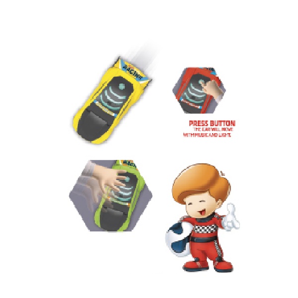 Press the button on the top. The Car will move with sound and light