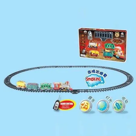 This is a toy train set designed with a radio control function for added convenience. It includes a deep colored railway and a train with exquisite details and durable construction. This toy train set is an ideal choice for boosting children's creativity and imagination.