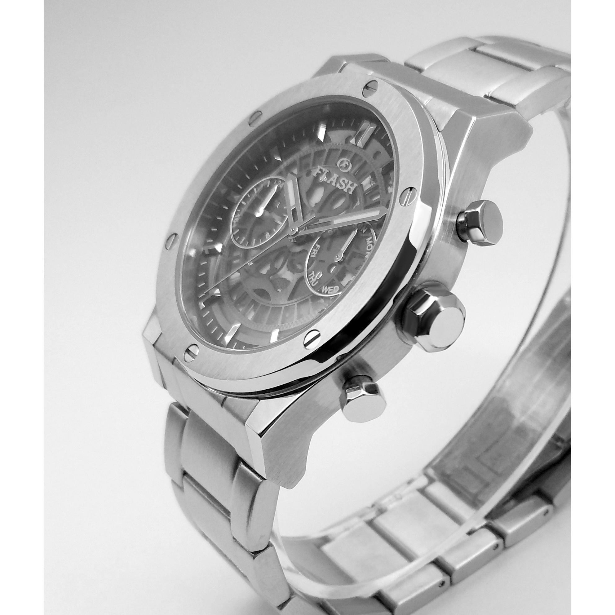 Steelness/quartz movement presents the effect of a mechanical watch