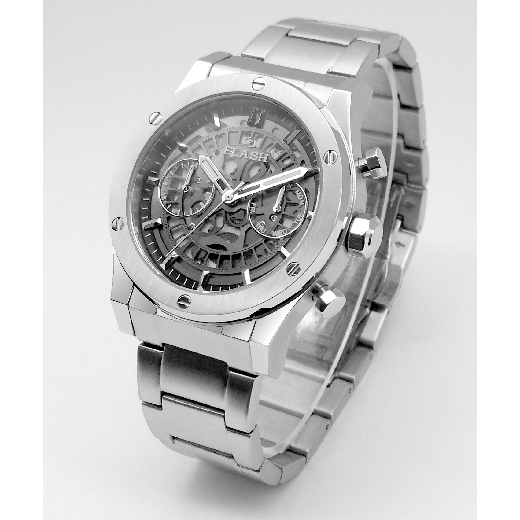 Steelness/quartz movement presents the effect of a mechanical watch