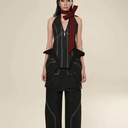 BEATRICE ANGELICABA/SS26/APRDP/BLApron denim pants with detachable parts and adjustable hem.