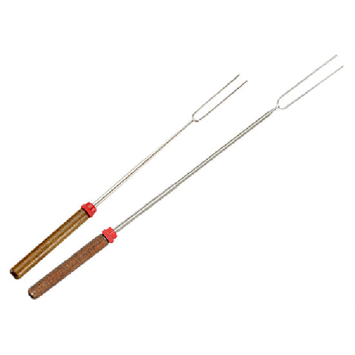 Expandable barbecue fork with wooden handle includes the following features: