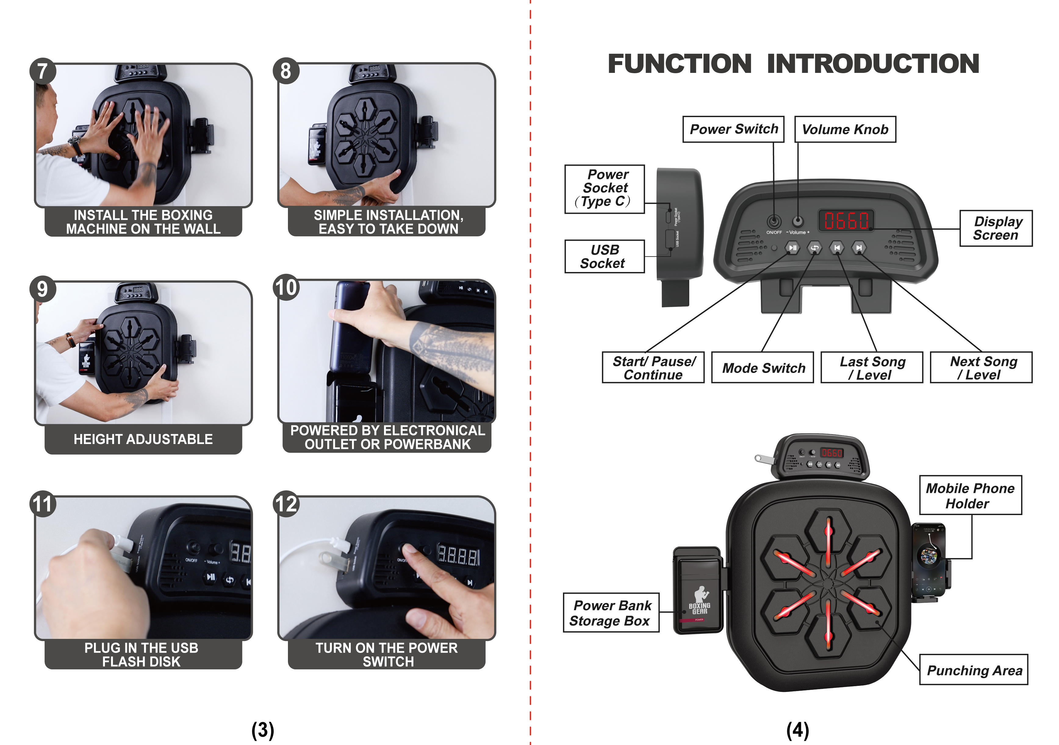 There is music playing when boxing, Lights up on the boxing machine, player should punch the light-up area.