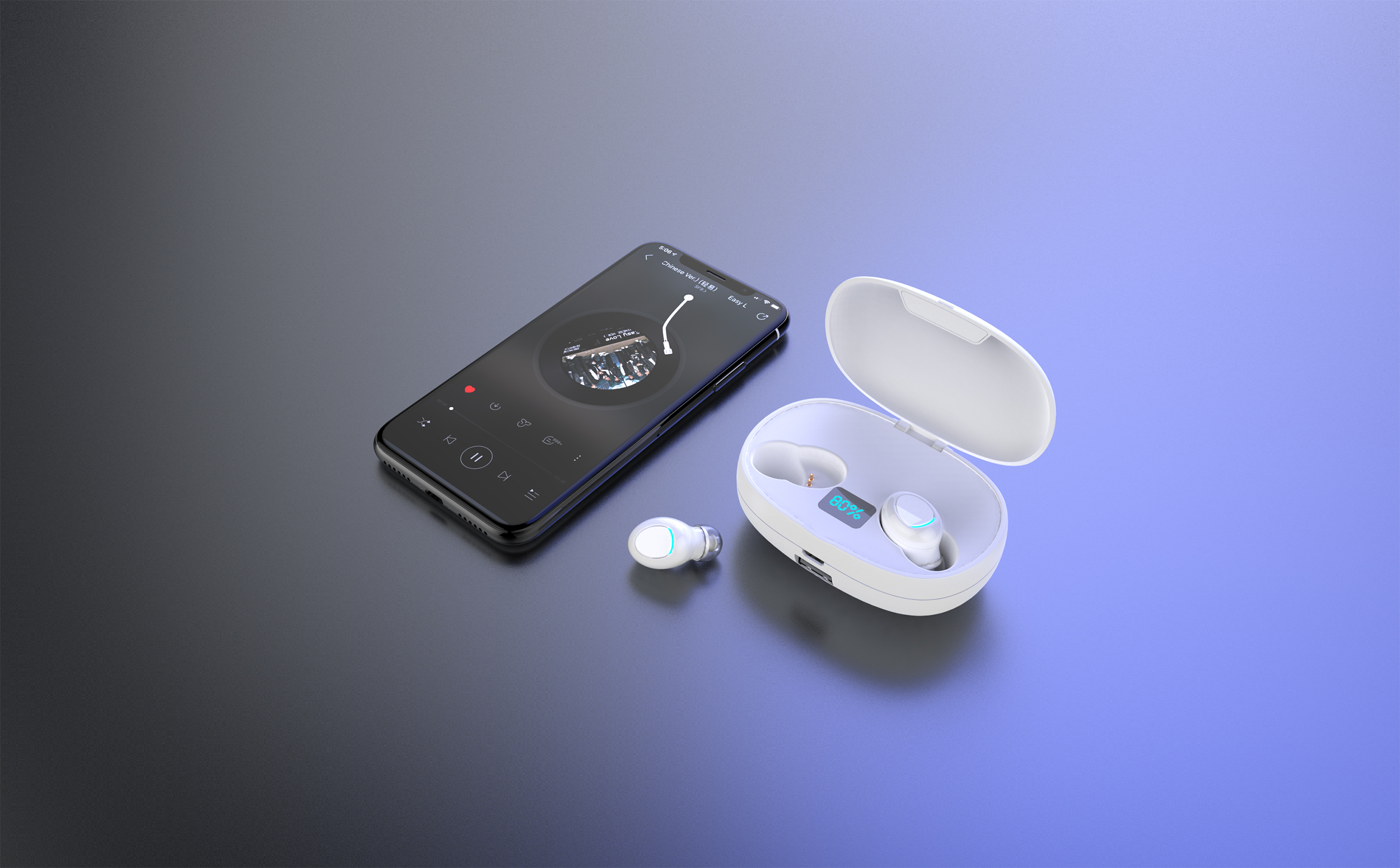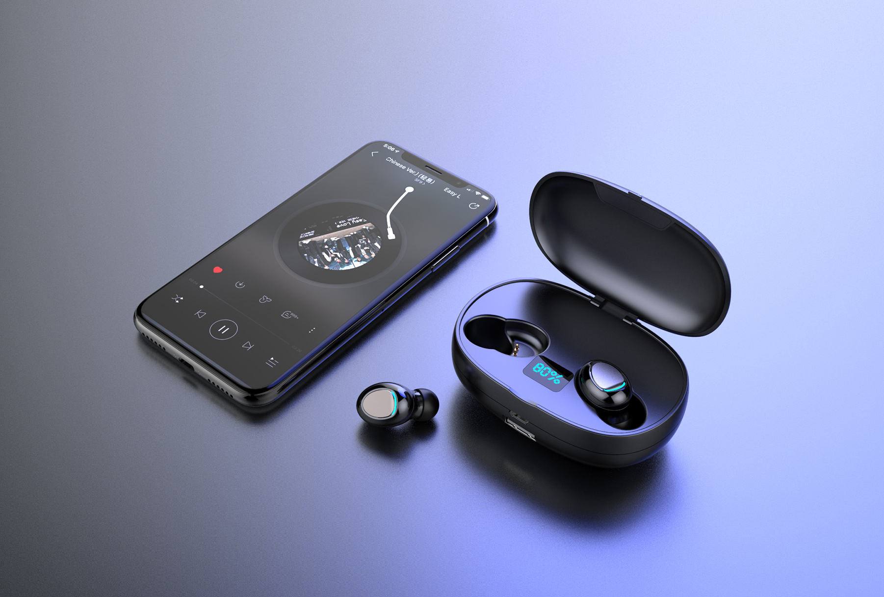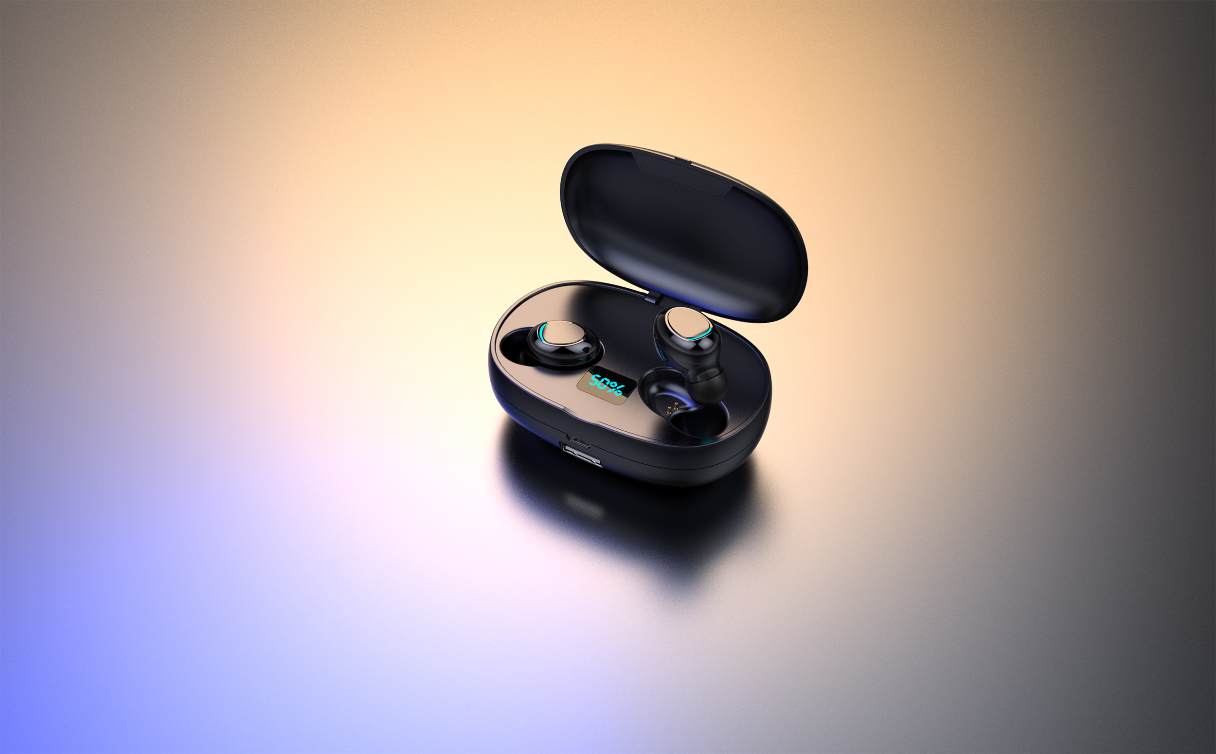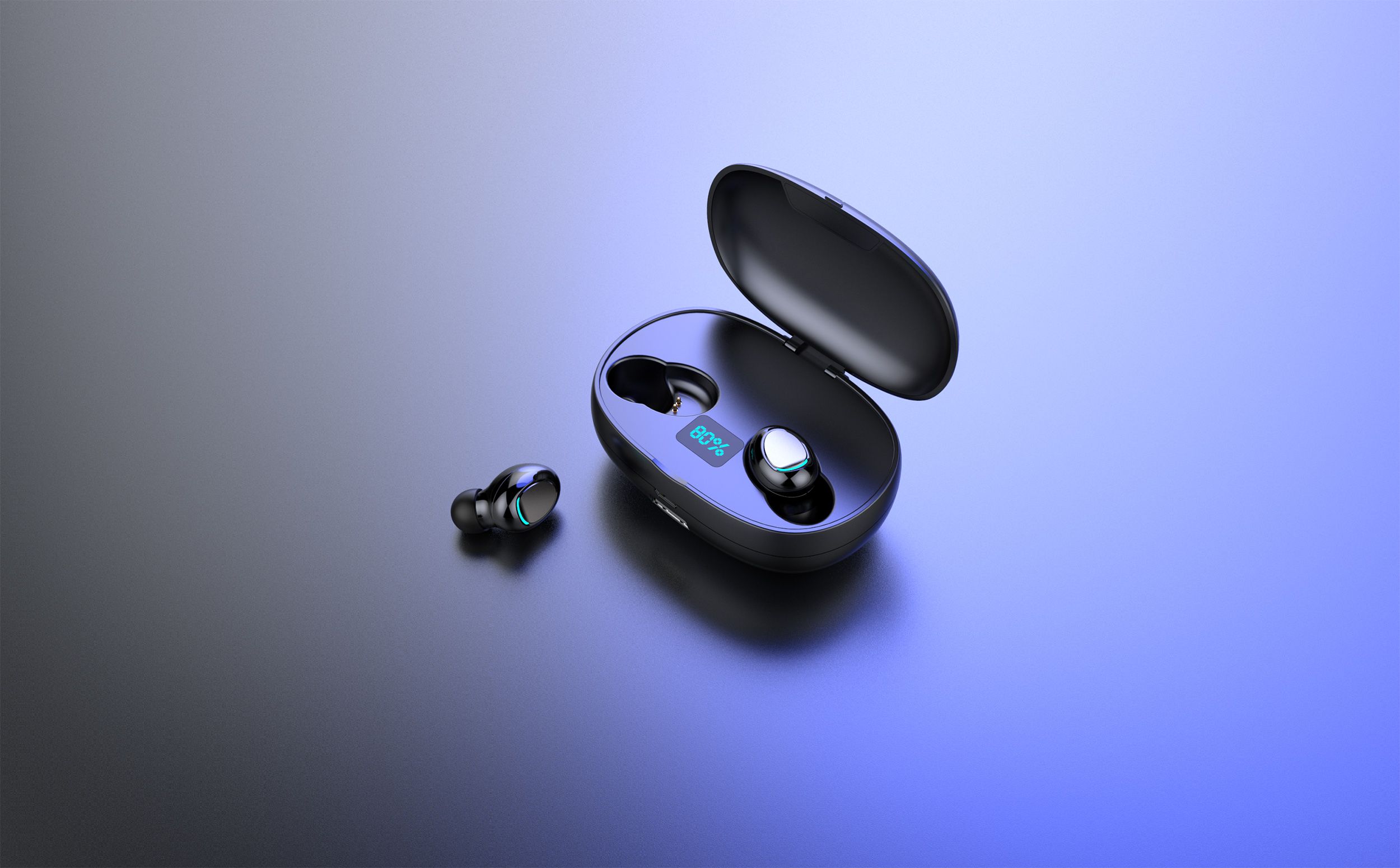 Deep Bass BT V5.0 TWS Earbuds with LED display on charging case