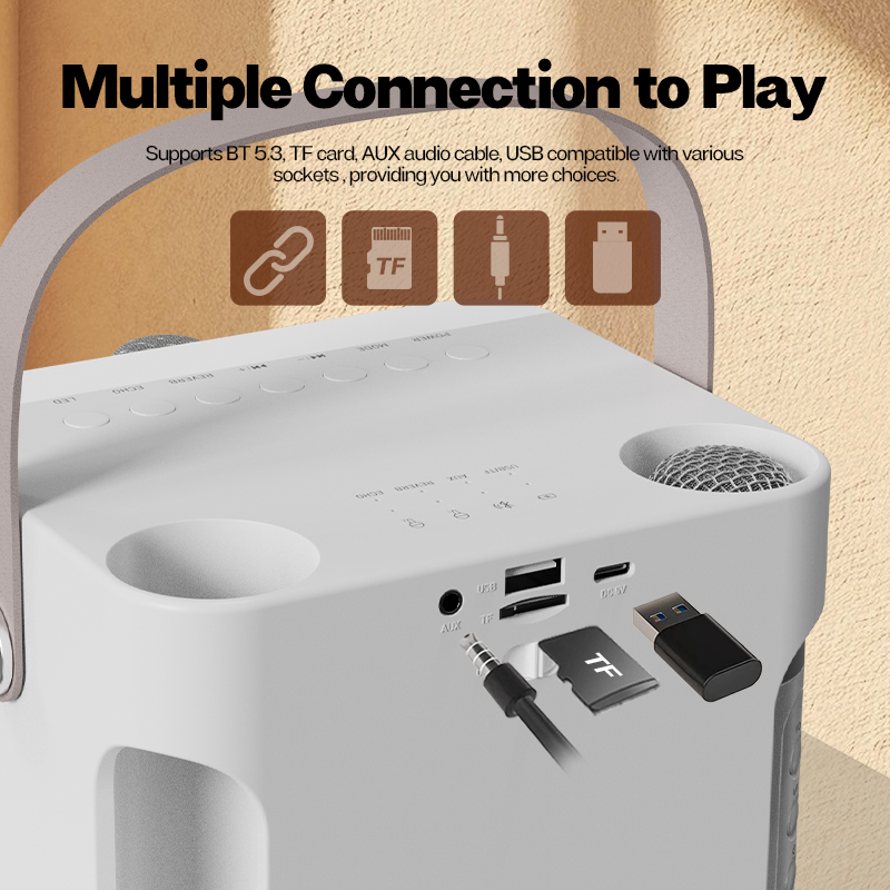 Key attributesIndustry-specific attributesbluetooth standard Bluetooth v5.3 battery Yes Other attributessupport microphone Support wireless connection built-in microphone Yes led lighting RGB remote control NO estimated battery life 10-15 hours with handheld microphone With 2 microphone battery charging time 5-7 Hours cabinet material ABS,PC,Iron Mesh,Electronic components color White communication bluetooth display screen NO feature Video Call, Dolby Digita, Phone Function, Play Video, colorful LED light power source Battery private mold Yes voice control NO place of origin Guangdong, China brand name MANOVA model number BTS-805 Product name Wireless Karaoke Bluetooth Speaker Color Black Bluetooth version 5.3 Warranty 1 Year Battery capacity 4000mAh Rechargeable Lithium Battery Usage Mp3/Mobile Phone/ PC/outdoor/party/travel Charging time 3 Hours Working time about 12hours(at 2/3 volume) Logo OEM Customized Logo LED Lighting RGB Changeable |