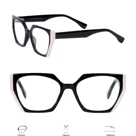 HONGTU Glasses Model BZ240812 features a unique geometric cat-eye frame design with intricate metal detailing on the temples, available in five distinct color variants (COLOR-01 to COLOR-05). It has a frame width of 52mm, a bridge width of 19mm, and a temple length of 145mm, ensuring a comfortable and stylish fit. Combining avant-garde aesthetics and meticulous craftsmanship, this model is an ideal choice for those seeking a fashionable and individualistic eyewear option that stands out with its bold design and versatile color range