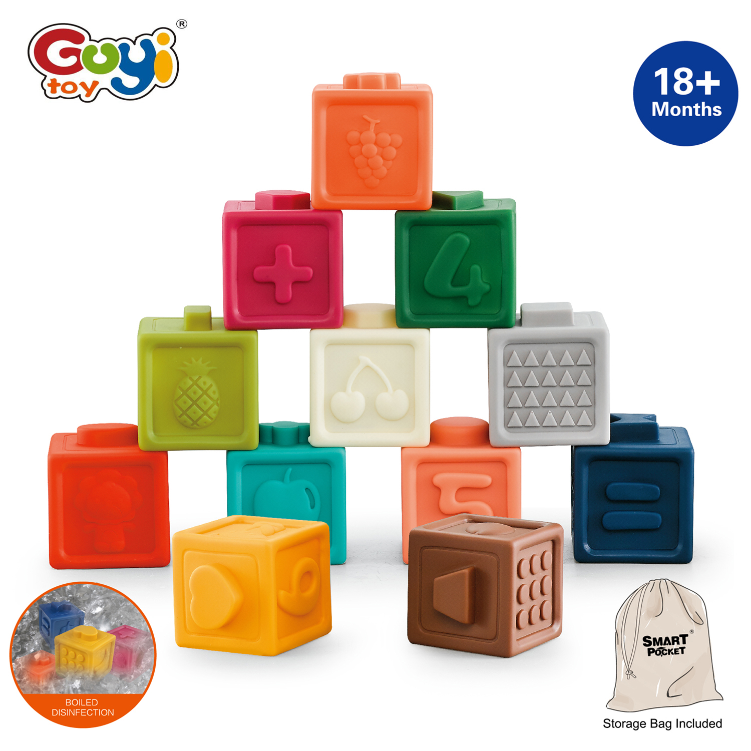 ♥ These blocks are made of vinyl ,easy to squeeze to make a squeaking sound for toddlers and babies to play. They can be cooked at high temperature (120 degrees )without deformation, no Balancing. They are soft , have no sharp water chestnuts, durable and easy to lift and stack with baby’s hand, can be pressed together.