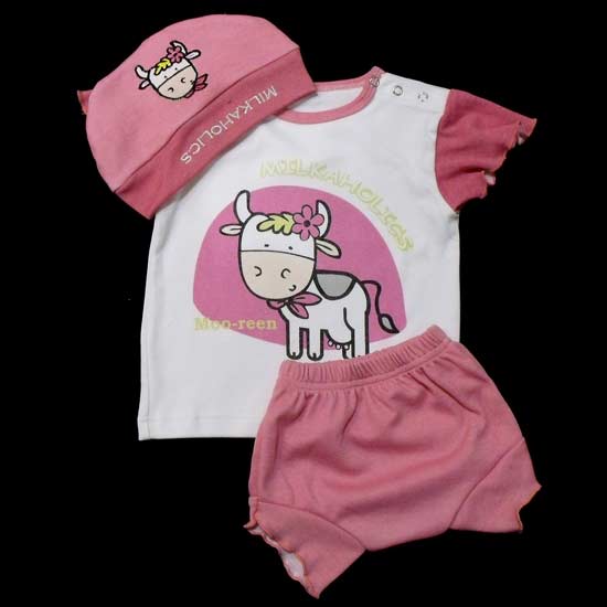 The 3-piece babies' clothes set includes a beanie hat, a short-sleeve T-shirt and a pair of elastic pants. They are incredibly soft and breathable for superior comfort. This 3-piece babies' clothes set is great for everyday wear.