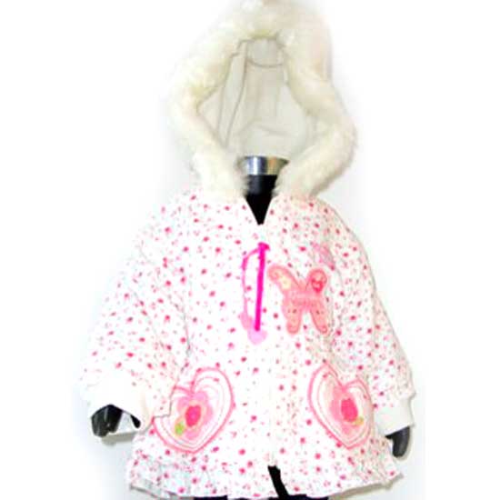 Photographed is a lovely hooded jacket for babies. The delightful patterns easily capture attention from crowds. The fur accents on the hood ensure warmth.
