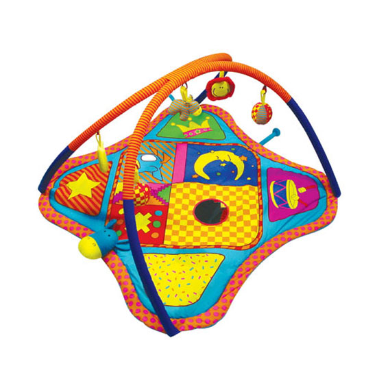 This baby play mat boasts a colorful and vibrant look. Multiple soft toys are hung from the two top bars to stimulate babies’ curiosity. This highly interactive play mat is great for every nursery.