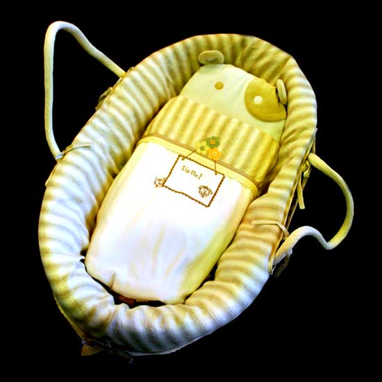 Displayed here is a baby basket bed set that boasts a classical style. This baby basket is made of rattan material. Aside from the basket, this excellent set comes with a pillow and a blanket.